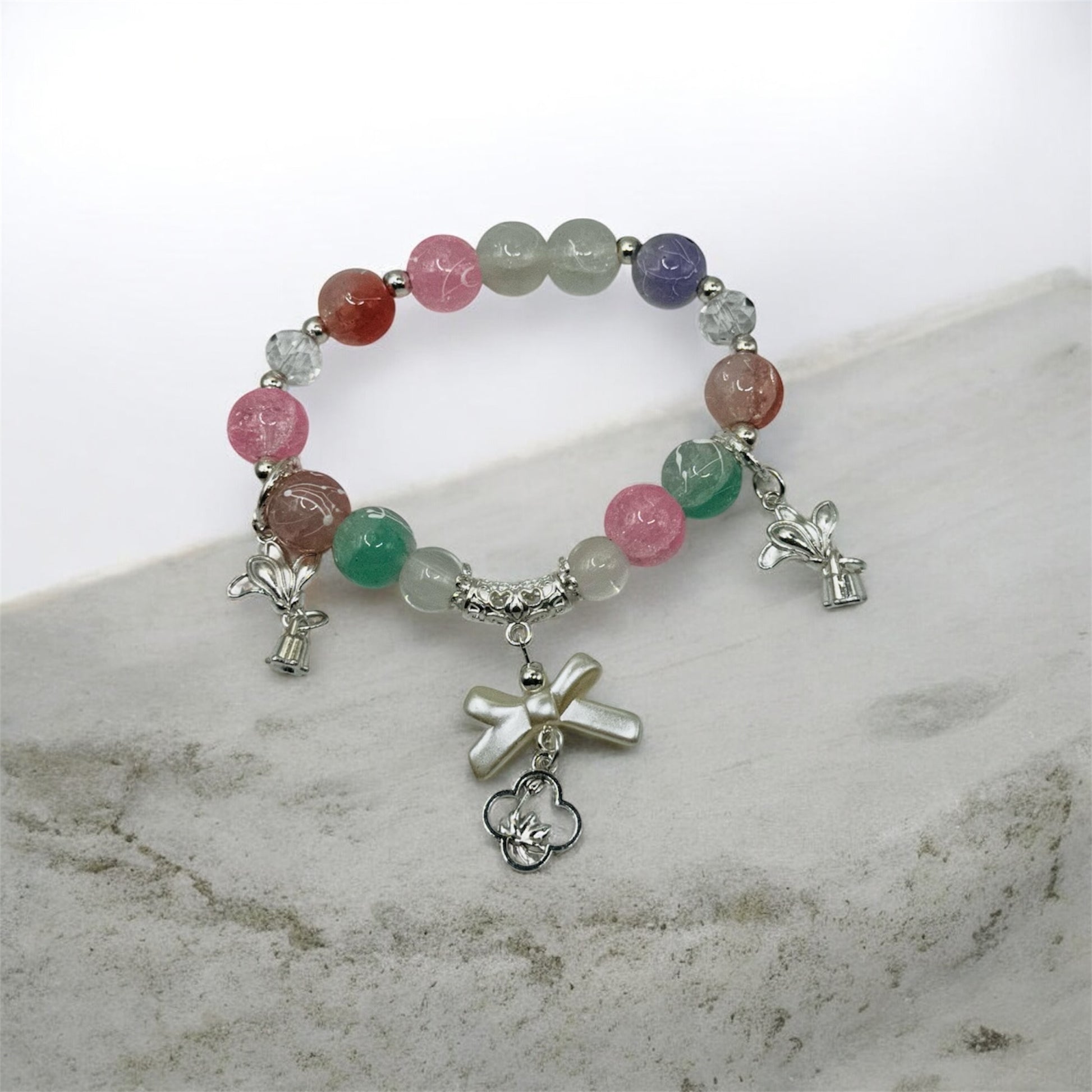 This bracelet is completely one of a kind and handmade with care. Each piece is unique in color, bead pattern, and design — you will receive the exact bracelet shown in the photos. Handmade beaded bracelet. One of a kind (only 1 available). Stretch cord for easy wear. Lightweight and comfortable. Perfect for everyday wear or gifting. Please note: Due to the handmade nature of this item, slight variations are part of its charm. Care Instructions: Avoid water, lotions, and perfumes to preserve the bracelet’s quality. Store in a dry place when not in use. All sales are final on handmade items.