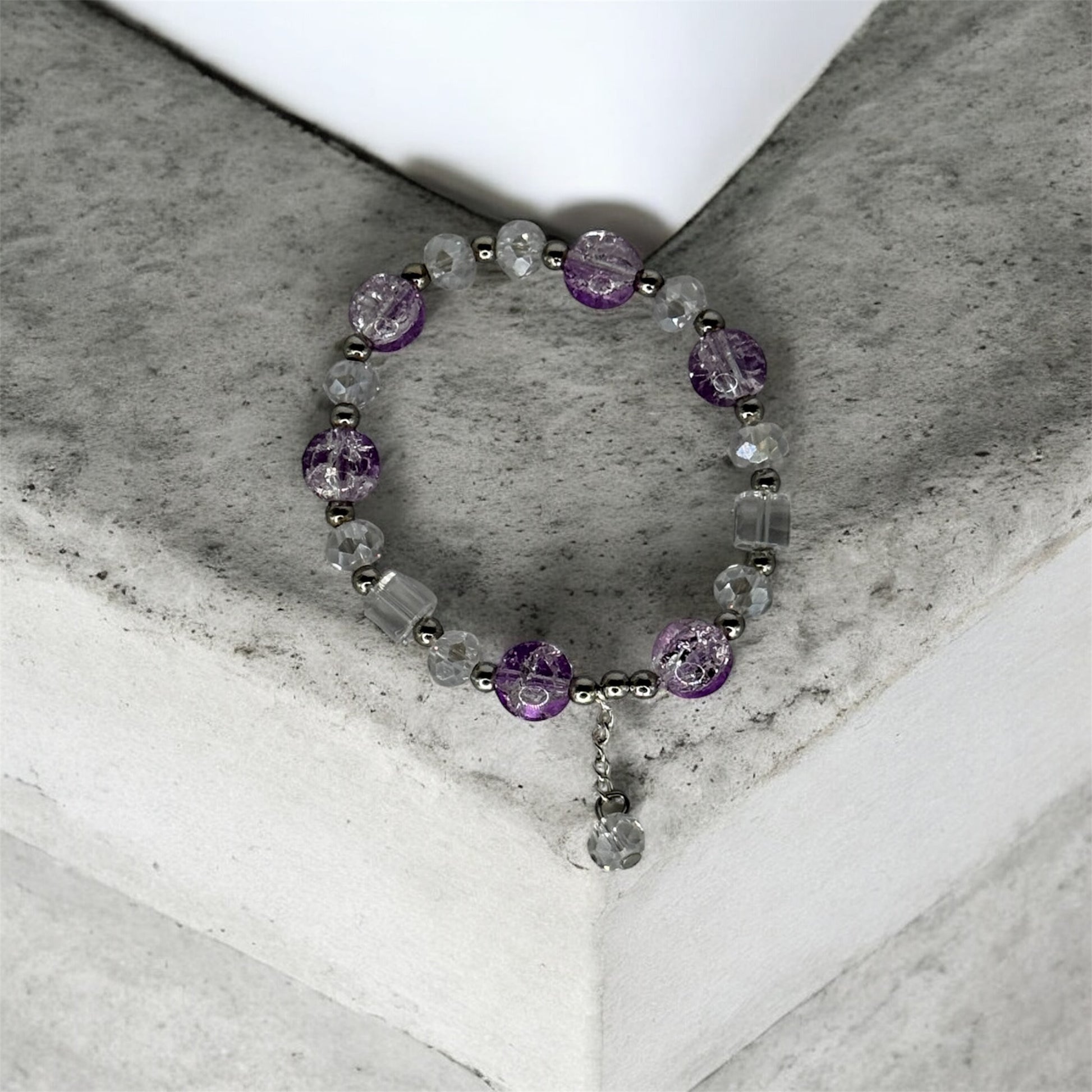 This Luna's Crystal bracelet is hand crafted with shiny and classy purple and clear beads, and an accent crystal. A minimal design that adds a touch of elegance to any outfit. A must-have for any jewelry collection.